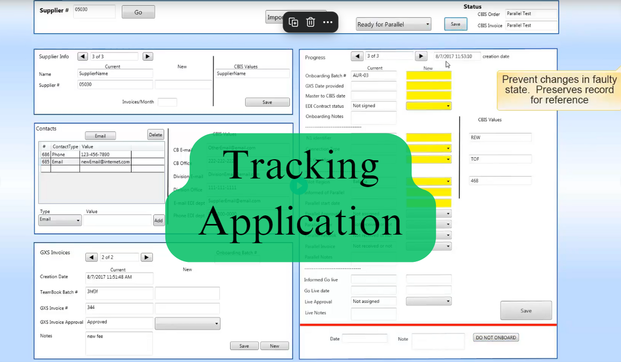 - Designed and implemented a comprehensive supplier management application used to track the state of new suppliers from onboarding to piloting to going live.